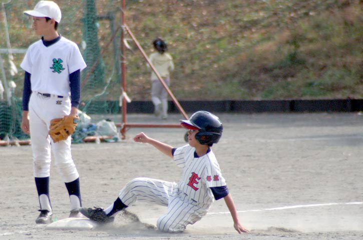 聖也の好走塁。この日はコーチャーズボックスではなく、ダイアモンドで大活躍。