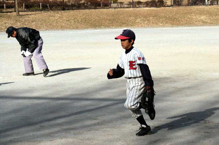 こちらは難しいフライをナイスキャッチし、勇躍ベンチに戻る徹