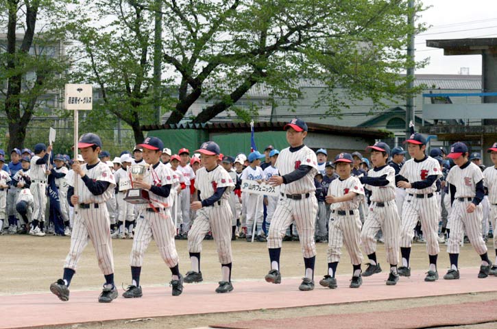 現Aチームが勝ち取った関東学童の優勝杯を手に行進のBチーム。再び同じ優勝杯を手にして欲しいものです。