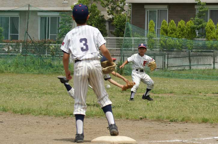 ダイブしている選手、バックアップのライトに較べファーストの選手の後ろ姿が今ひとつ他人事のように感じるのは私だけ?