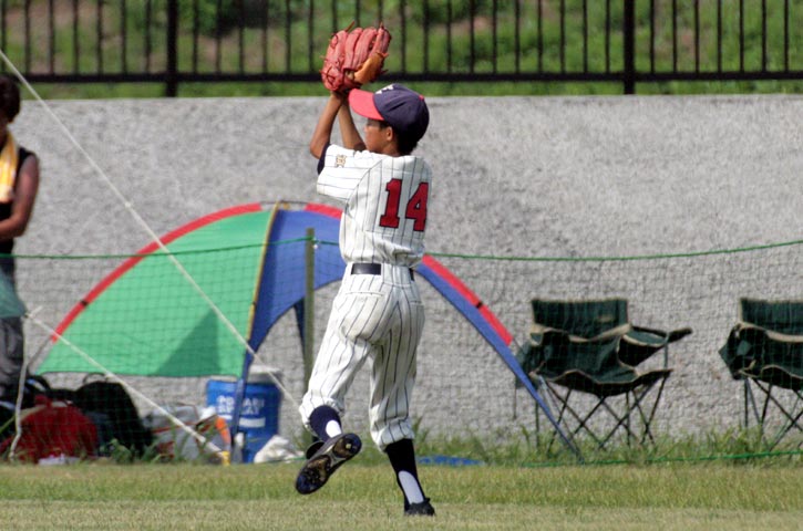 ライン際の難しい打球を好捕する前ビー