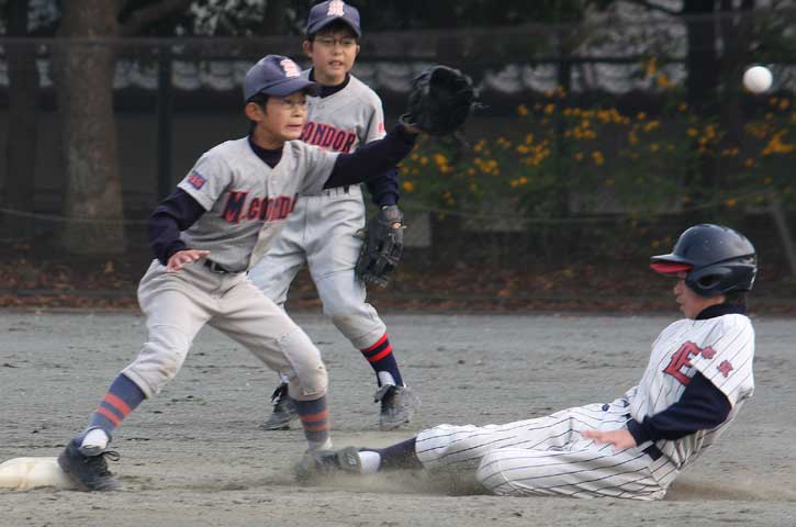 児英も海飛に負けじと盗塁成功。この後、ヒデのタイムリーで生還しました。